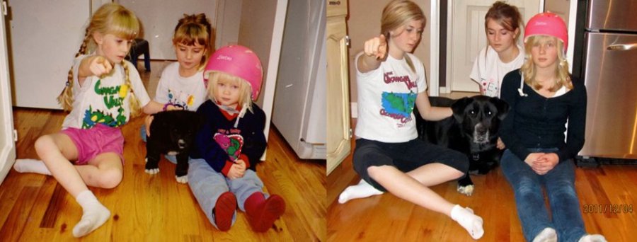 Vous pourrez remarquer grâce à ces photos que les chiens grandissent vraiment vite. Dans quelques mois , ce petit chiot mignon qui galope entre vos jambes avec enthousiasme, aura déjà la taille adulte . Leurs corps en pleine croissance et leur rapide maturité remettent ainsi les changements dans nos propres vies en perspective. Cela nous aide aussi à apprécier le fait qu’ils passent leur vie à nos côtés comme de fidèles compagnons. Regardez les images, c’est fou comme le temps passe vite et comment on change !