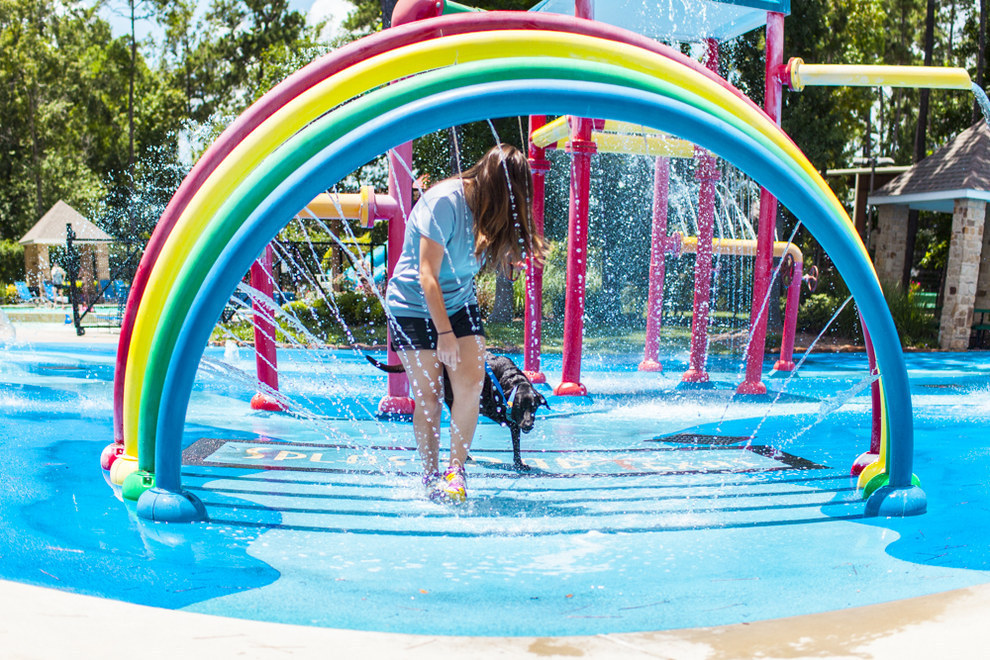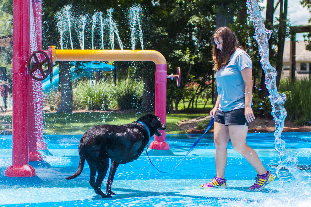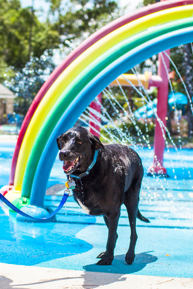 Pendant que nous attendions le vétérinaire, Kristen a dit que nous allions faire une promenade. Puis quelqu’un a dit, « Pourquoi ne pas aller jouer dans l’eau au splash park en bas de la rue ? » Alors nous y sommes allé !