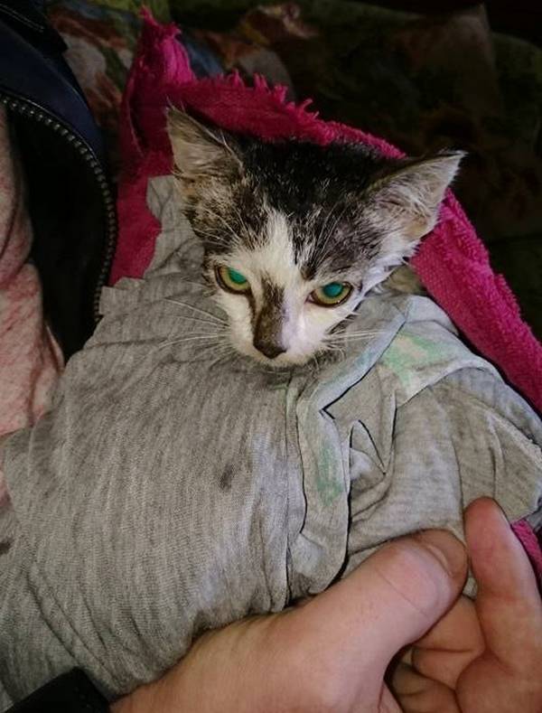 Lors de la forte tempête qui a inondé la ville quand il a repéré le chaton coincé dans la montée des eaux. Le jeune homme a alors sauté de la voiture pour aider le pauvre petit félin. L’homme sort alors de la voiture et se jette à l’eau, traversant la rue inondée à coups de grandes enjambées pour rejoindre le petit animal terrorisé. Face à l’intensité du courant, le félin n’avait aucune chance de s’en sortir sans le coup de pouce de cet ami des animaux.