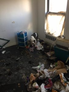 Sur la vidéo, on fait connaissance de Reggie, un chien croisé Pitbull et Dogue allemand d’un an, et Sylvester, un chat de deux ans, qui ont vécu un véritable cauchemar pendant plusieurs mois dans un appartement de New York, aux États-Unis. Véritables prisonniers, ils vivaient entourés de détritus en tout genre. Des restes de nourriture, des sacs poubelle, des meubles cassés ou des morceaux de vélo… Les animaux évoluaient dans un véritable capharnaüm. Le sol était jonché de leurs excréments et la moquette imbibée de leur urine.