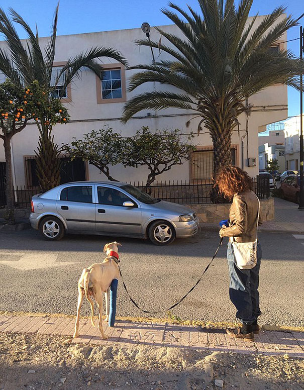 Cette maman chien greyhound avec une patte cassée a été trouvée marchant seule dans la rue dans le sud de l’Espagne. Elle avait été trouvée en train de roder autour d’un supermarché. Heureusement pour ce toutou, elle a été remarquée par une femme nommée Lianne qui a été choquée par la maigreur et la mauvaise mine de la maman. Elle a donc décidé de sauver ce pauvre animal d’un supplice douloureux. La jeune femme a donc emmené la maman, nommée Vera, chez un vétérinaire ami pour administrer les soins dont elle avait besoin. Vera était sévèrement émaciée, gravement mal nourrie, et pour couronner le tout, une de ses pattes était fracturée. Lianne et Ellen se demandaient comment la chienne avait pu survivre avec tous ces graves problèmes de santé.
