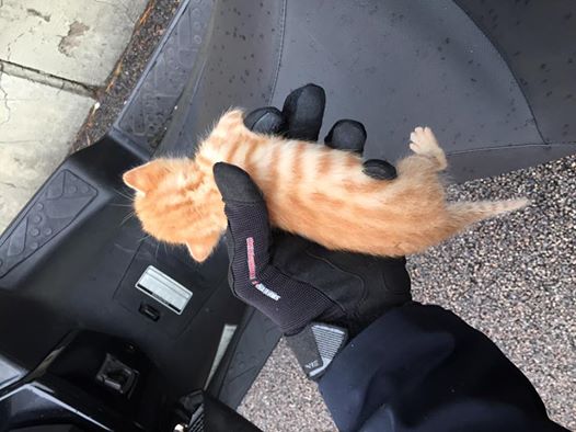 Le motocycliste voit un chaton paniqué sur la route – Sa réaction est adorable