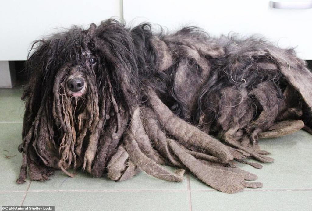 Selon leurs sources, le propriétaire de l’animal aurait des problèmes de consommation d’alcool et vivait dans des conditions difficiles. Il avait totalement négligé son chien qui vivait avec lui. Incapable de s’en occuper, le chien se nourrissait à peine et surtout, n’avait aucune hygiène. Quand les soigneurs d’une association animalière de Łódź, au centre de la Pologne, sont arrivés sur place, ils ont découvert une boule de poils sales. Ce sont des voisins qui ont aperçu l’animal par la fenêtre qui ont eu la présence d’esprit d’appeler les secours.