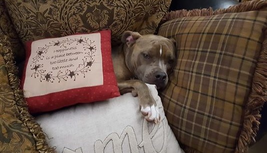 La mère de Lady s’est retrouvée dans un refuge pour animaux lorsqu’elle était enceinte. La petite Lady n’avait vu le jour dans un refuge et elle n’avait que neuf semaines lorsqu’elle a été adoptée. Mais depuis elle est complètement amoureuse de sa famille. « Si Lady n’est pas assise à côté de vous, elle est assise sur vous », a déclaré sa propriétaire, Jen Anderson« Elle est très affectueuse, veut plaire, aime faire des câlins et faire des bisous! »