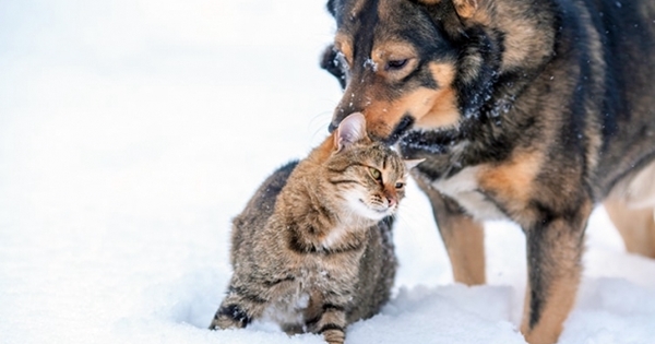 Nous parions que le chat était ravi de réaliser qu’il n’était pas sur le point d’être mangé ! Le chat accepte avec joie l’offre d’un foyer chaleureux. Elle est maintenant capable de se blottir contre un autre animal et de retrouver de la chaleur dans son corps. C’est un comportement adorable il faut bien dire. Malgré cela, nous restons un peu étonné de voir ces animaux dormir dehors alors qu’il semble faire très froid.