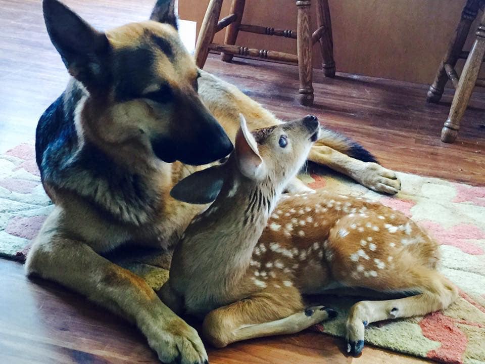Ce Berger Allemand s’approche du bébé faon orphelin – Sa réaction est adorable