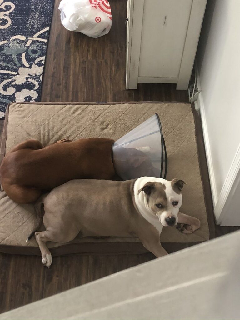 Roman devait subir une opération. Le magnifique chien n’allait pas très bien. Jill l’a emmené chez le vétérinaire quatre jours avant la chirurgie pour voir s’il pouvait être traité plus tôt, mais le vétérinaire lui a assuré que tout se passerait bien. Au début, Spanky n’a rien remarqué de différent, mais à mesure que l’oreille de Roman se détériorait, la famille a remarqué que Spanky était beaucoup plus doux et inquiet pour son meilleur ami.« Spanky n’est pas normalement doux », a expliqué Jill. « Il est un peu rude quand il joue, mais quand Roman ne se sentait pas bien, il était si gentil avec lui. Il a essayé de ne pas jouer trop dur comme d’habitude. »