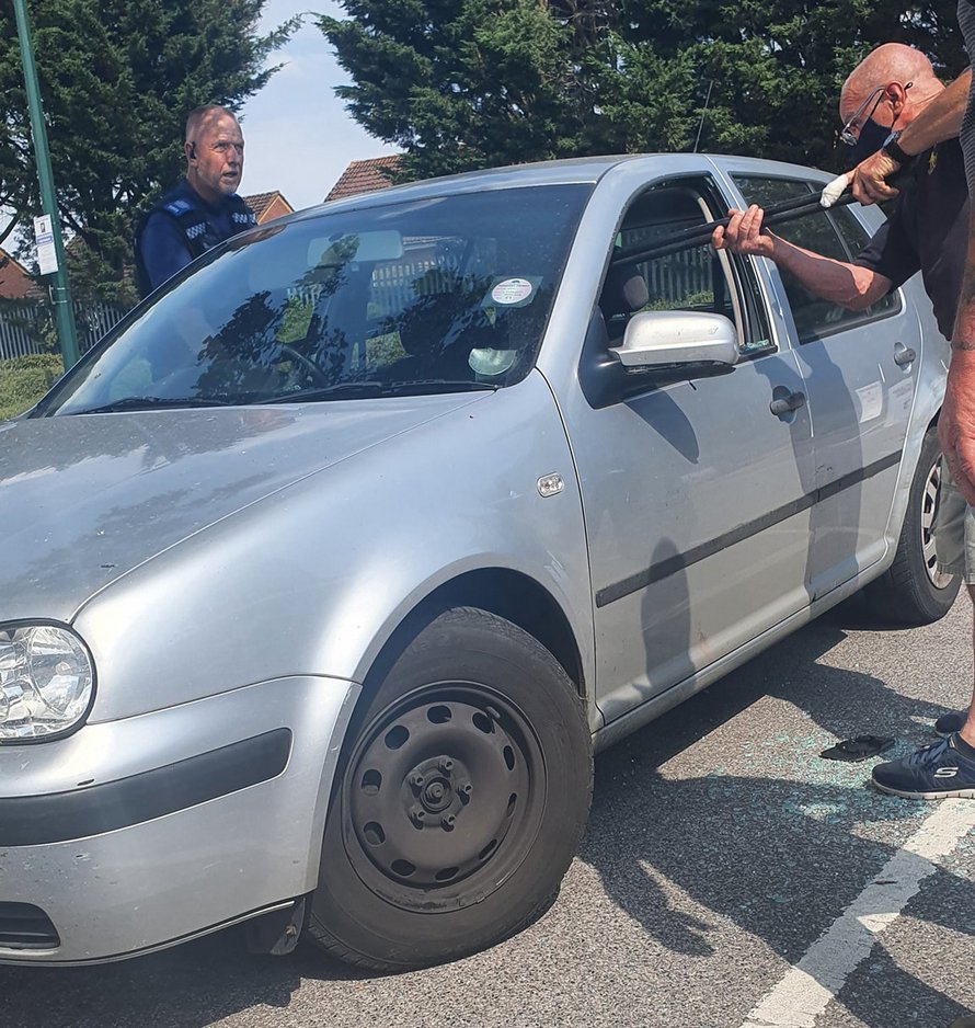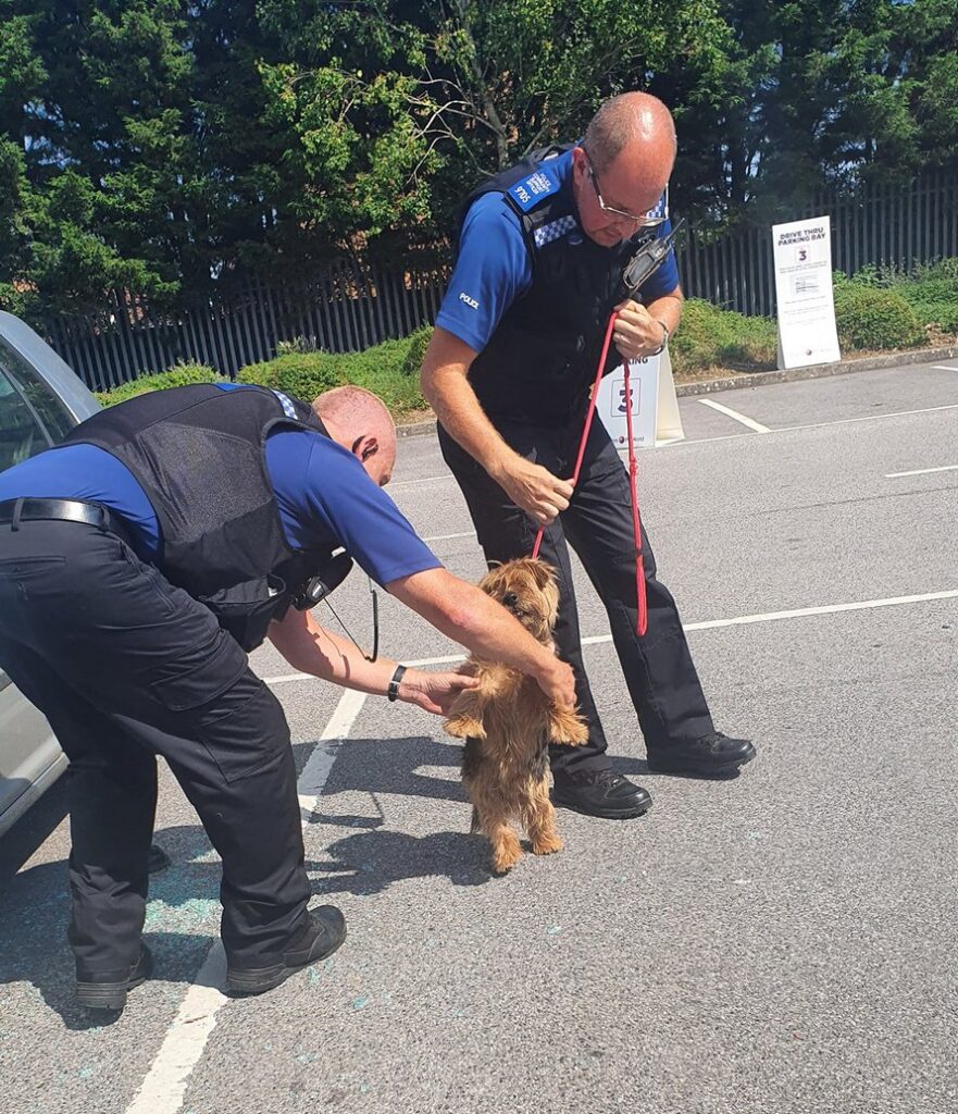 C’est sur le parking du Newbury Retail Park dans le Berkshire que se déroule cette scène. Un homme est intervenu avec une hache pour sauver un chien qui avait été laissé à l’intérieur d’une voiture à une chaleur de 34°C (température extérieure). Les images montrent l’homme qui brise une vitre avec la hache pour atteindre le yorkshire terrier qui se trouve à l’intérieur. Face à des passants stupéfaits, il se met alors à frapper avec force sur le véhicule pour en briser une vitre. Il faudra s’y reprendre à 8 fois avant que la vitre cède.