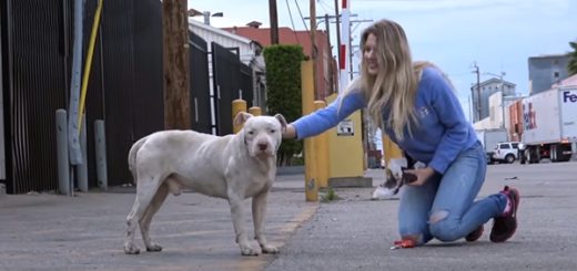 A Saint Louis dans l’Etat du Missouri (Etats-Unis), l’équipe d’une association de protection animale avait été alertée à propos d’une chienne errante qui avait encore sa chaîne autour du cou. En arrivant sur les lieux, l’équipe de Stray Rescue of St. Louis l’ont trouvée cachée derrière une voiture. La chienne traînait effectivement une lourde chaîne, à cause de laquelle sa tête était baissée en permanence. Par ailleurs, elle était très maigre. Ils ont essayé de l’attirer avec de la nourriture, mais, même si elle était affamée, la chienne était apeurée. Avec beaucoup de patience, ils ont réussi à la faire monter à bord de leur véhicule pour l’emmener au refuge.