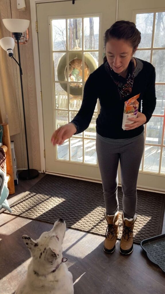 Depuis, Reggie ne se prive plus de ce moyen de s’exprimer. A chaque fois qu’elle cherche à avoir l’attention de l’un des membres de sa famille ou qu’elle réclame une friandise, par exemple, elle utilise son aboiement. Lindsay Kelly perçoit chez sa chienne du bonheur et de la fierté lorsqu’elle communique de la sorte. Regardez la vidéo, vous pouvez voir Reggie en action. C’est tellement mignon de voir à quel point elle est fière !