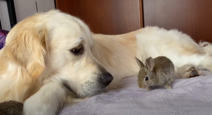 Des bébés lapins pensent que ce Golden Retriever est leur père – Réaction adorable