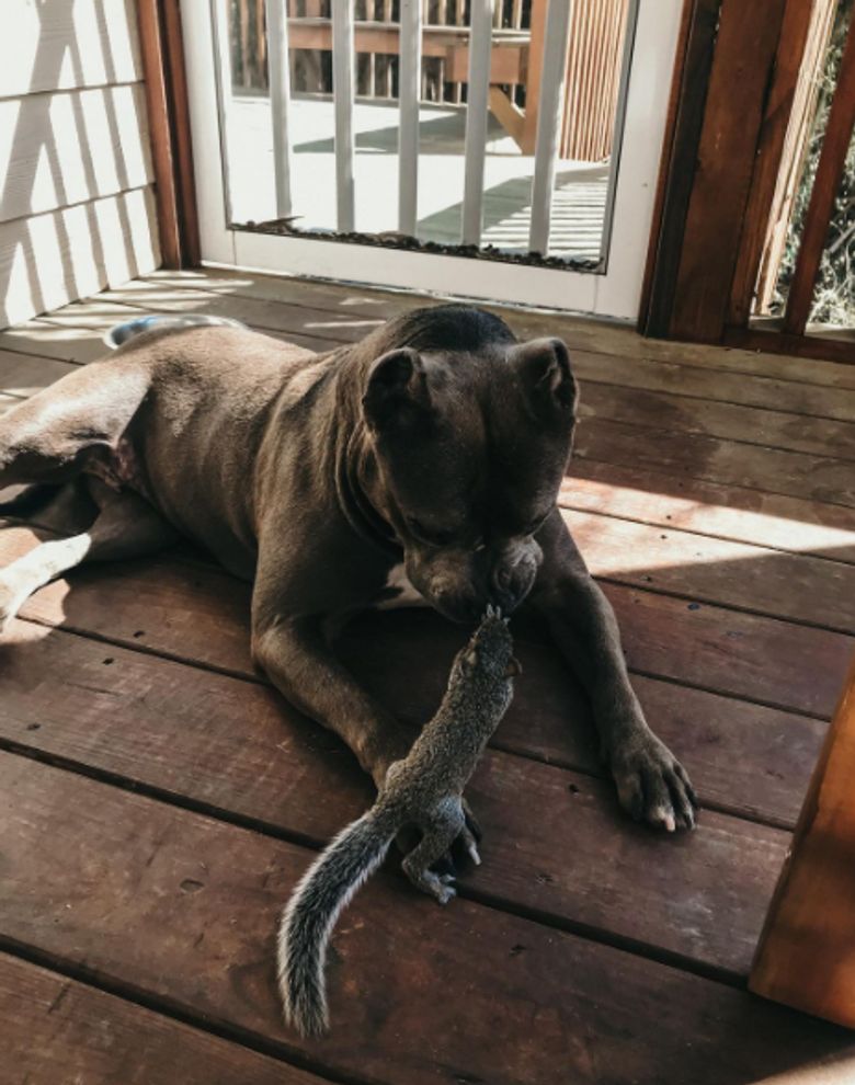 Le Pitbull s’est occupé de l’écureuil