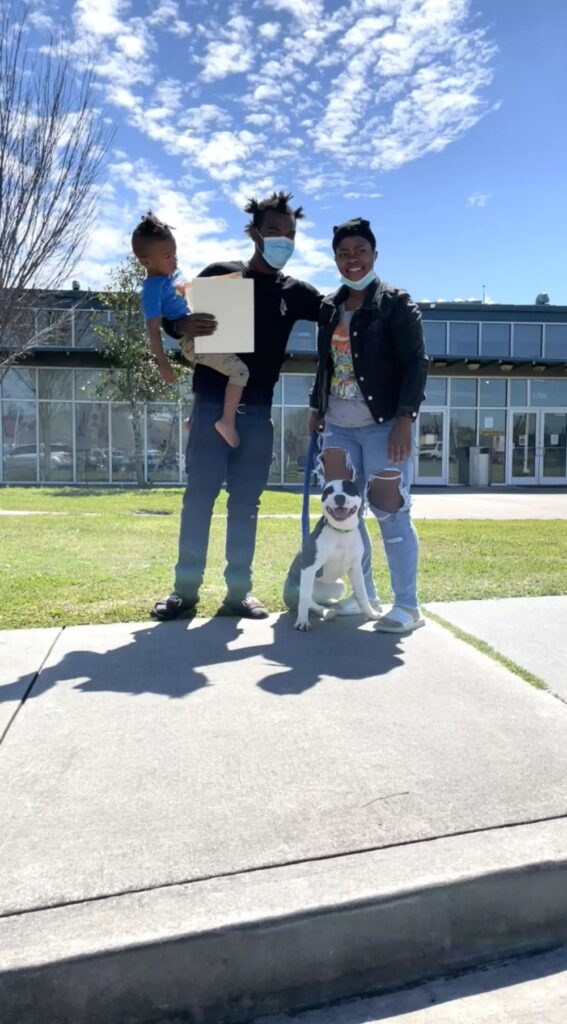 Désorienté et apeuré, l’animal a reçu toute l’affection des bénévoles. « Il avait très peur et grondait doucement lorsqu’il rencontrait de nouvelles personnes », a déclaré Nene Lewis, membre de l’association qui vient en aide aux animaux. Au fil du temps, Cow a commencé à sortir de sa coquille et à se détendre. Il était là depuis deux mois et les membres du personnel s’efforçaient de lui trouver une nouvelle famille parfaite, jusqu’à ce qu’ils lui trouvent quelque chose d’encore mieux : la famille qu’il avait perdue. Le personnel du refuge a appris qu’une famille recherchait désespérément son chien, depuis qu’il avait été volé. Il s’agissait de Cow ! D’une manière ou d’une autre, l’animal s’était retrouvé à la SPCA. Cela a permis de le réunir avec ses proches.