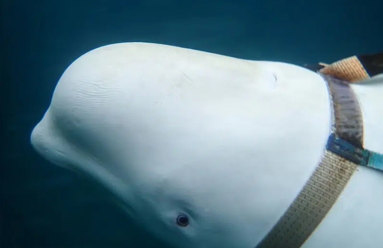 Le béluga portait son téléphone dans sa bouche
