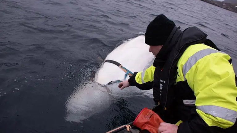 Bien qu’il ne soit pas rare de rencontrer des bélugas dans l’océan, des pêcheurs norvégiens sont récemment tombés sur une baleine blanche qui les a vraiment surpris. Quand le béluga amical s’est approché du bateau des pêcheurs, ils ont remarqué quelque chose d’étrange à son sujet. Ce béluga s’est échoué en pleine mer au large de Hammerfest, en Norvège. L’animal portait un harnais et une fois qu’un pêcheur l’a enlevé, ils ont remarqué qu’il portait l’inscription « Équipement Saint-Pétersbourg ».