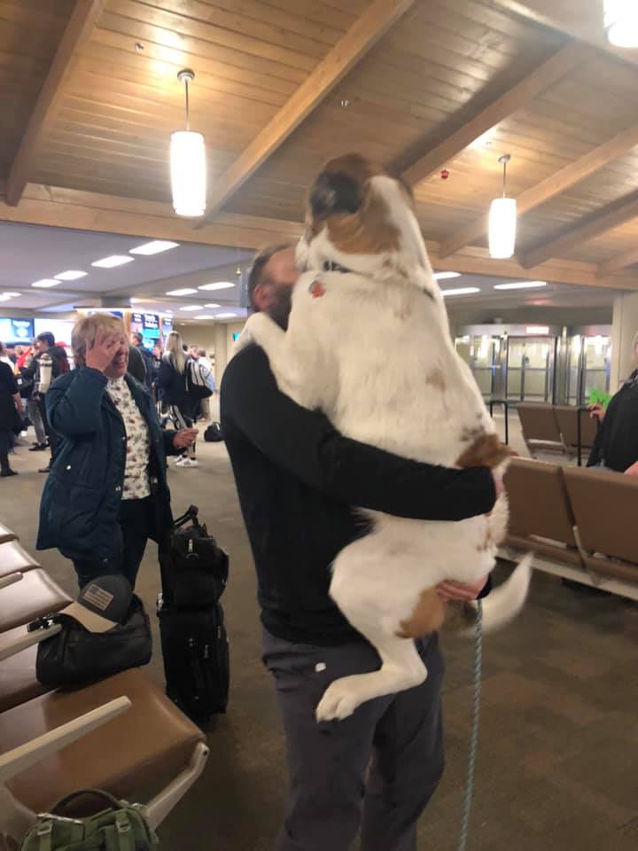 Mais des obligations telles que l’école et le travail nous séparent inévitablement. Avec les humains, nous pouvons nous connecter en un tour de main. La technologie moderne a rendu la connexion plus facile que jamais. Cependant, rien n’a changé pour nos animaux de compagnie. Ils ne peuvent pas se connecter à une tablette pour nous parler. Récemment, cet homme est revenu de son service militaire. C’est alors qu’il a commencé à comprendre à quel point nos animaux de compagnie peuvent vraiment nous manquer. Dans cet aéroport de l’Oregon, il a retrouvé son compagnon à quatre pattes. C’était si beau. La vidéo est devenue virale en un éclair.