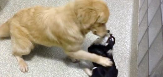 L’amitié entre ces deux Goldens Retrievers et leur voisin âgé est très émouvante. Le vieil homme leur rend visite quasi quotidiennement, pour le plus grand bonheur de l’ensemble du trio. Côtoyer des animaux présente de nombreuses vertus, cela n’est plus à prouver. C’est particulièrement vrai pour les personnes âgées, qui manquent parfois de compagnie et d’interactions. Ce n’est pas un hasard si certaines maisons de retraite accueillent régulièrement des chats ou des chiens pour le bien-être de leurs résidents.