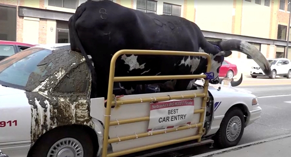 C’est un énorme taureau aux cornes imposantes qui était tranquillement assis sur le siège passager. Les forces de l’ordre n’en ont pas cru leurs yeux et n’ont pas manqué de rappeler à l’ordre l’automobiliste. Néanmoins, et à la surprise générale, le conducteur s’en est sorti sans la moindre réprimande, hormis un simple rappel à l’ordre. En échangeant avec les policiers, le conducteur de cette voiture a expliqué qu’il avait aménagé son véhicule spécialement pour pouvoir y asseoir son taureau. Il a indiqué aux policiers que son animal aimait tout simplement sentir le vent passer sur son visage lorsqu’ils font des promenades. Une scène plus que surprenante, mais qui aux États-Unis n’a rien de réellement étonnant. Après tout, le pays de l’Oncle Sam nous a souvent habitué à des scènes toujours plus amusantes les unes que les autres.