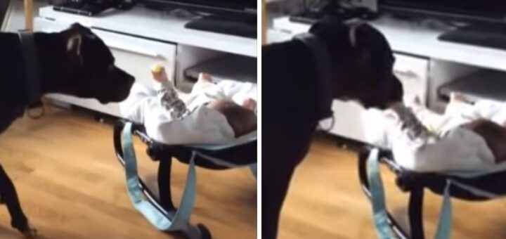 La réaction du Pitbull près du bébé (Vidéo) Les Pitbulls sont souvent considérés à tort comme des chiens agressifs – mais...