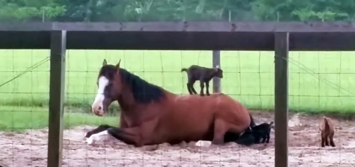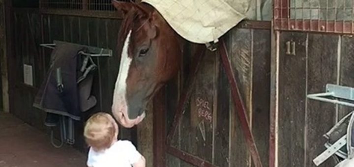 La fillette se précipite dans l’écurie pour sa routine matinale très spéciale