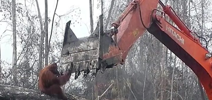 Un orang-outan fonce sur un bulldozer! (Vidéo) L’île de Bornéo est depuis des années ravagée par la déforestation, notamment à des...