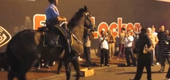 Le policier s’approche mais quand son cheval entend la musique, il se met à DANSER!