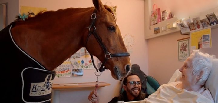 Il va vous faire fondre! (Vidéo) Déambulant dans les couloirs des hôpitaux français, Peyo, un étalon de 13 ans, rend visite aux...