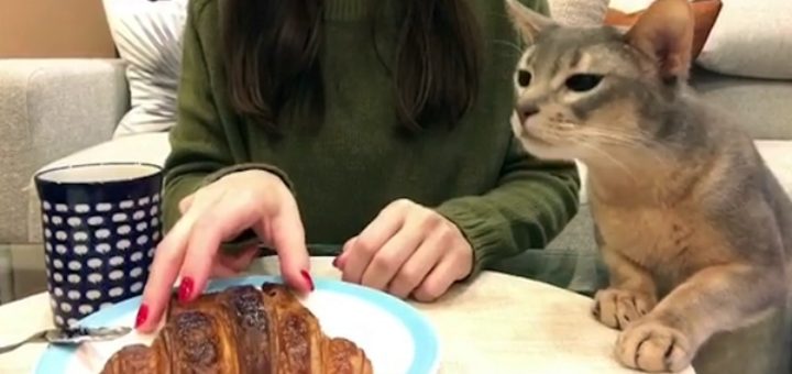 HILARANT! Ce chat veut une bouchée de croissant et rien ne va l’arrêter !