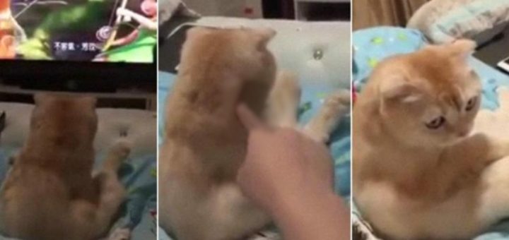 Ce chat écoute son dessin animé préféré, regardez sa réaction quand son humain le dérange!