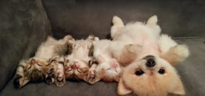 À fondre le coeur Ces chatons et leur ami chien dorment toujours les uns à côté des autres. Et même s’il...