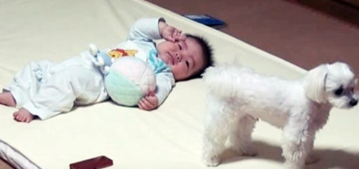 Regardez quand ce petit chien s’approche Les bébés sont de véritables petits anges lorsqu’ils sont heureux et tout sourire, mais quand...