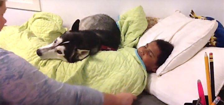 La réaction du chien est adorable (Vidéo) Une maman tente de lever son fils pour aller à l’école, mais le husky...