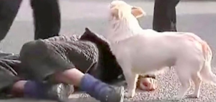 Sa réaction est déchirante ! Un petit chien blanc ne voulait pas quitter son propriétaire, même s’il était couché inconscient dans le...
