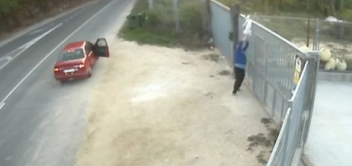Cet homme jette son chien par-dessus la clôture Ces images ont été filmées en Espagne par une caméra de surveillance devant un refuge pour animaux, où...