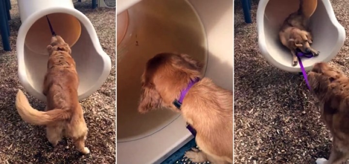 Ce chien est effrayé par le toboggan (Vidéo) Les aires de jeux sont souvent établies dans les parcs pour que les...