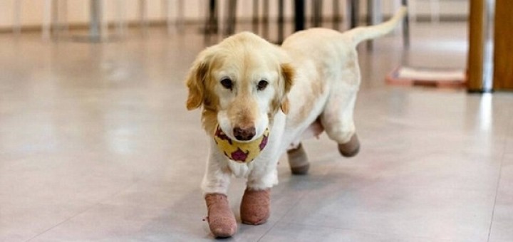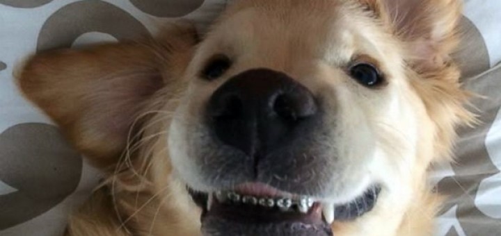 Ce chien porte un appareil dentaire ! C’est un golden retriever de six mois pas comme les autres car sa...