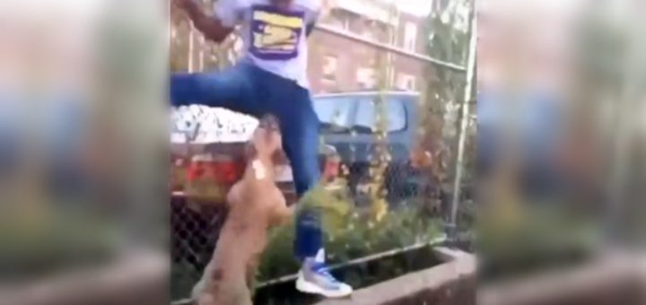 Pitbull veut absolument mordre les bijoux de famille d’un jeune homme qui PANIQUE!