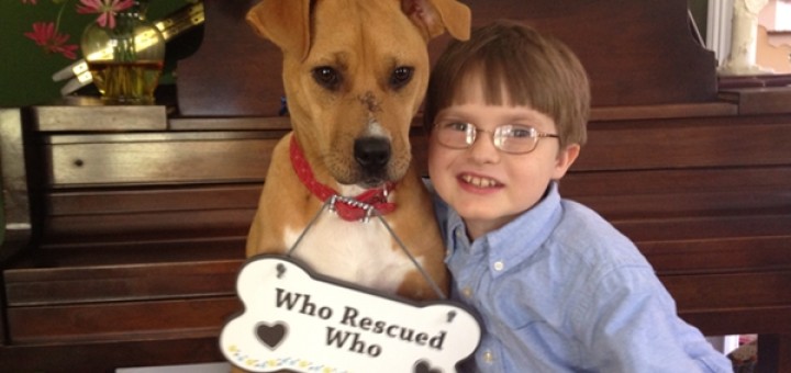 Chienne miraculée devenue meilleure amie d’un enfant autiste